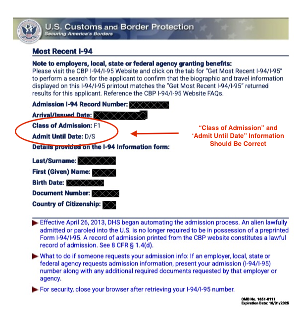 - Check your I-94 for accuracy - see below for more information